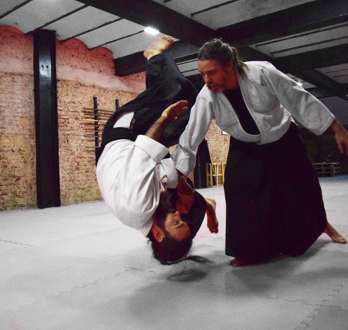 De origen japonés, AIKIDO nunca es fácil de definir. AIKIDO no es una palabra sino una combinación de tres “kanjis” (símbolos japoneses) que significan: AI 合: armonía / KI 気: energía universal / DO 道: camino Y aunque admite otras interpretaciones más complejas, es un buen comienzo entenderlo como: “camino de la armonización con la energía.” Aikido no es un deporte, y no hay competencias, torneos ni campeonatos. Se trata de otro tipo de progreso. No se trata de confrontar o de ganarle a otro, sino de aprender a re.direccionar la intención negativa de éste, hacia un lugar donde no haya daño. Por eso es “no resistencia”; es ceder para evitar el ataque. Priorizando movimientos circulares para salir de éstas situaciones. Por tanto, Aikido es movimiento, respiración, es colaborar y cooperar; es armonizar con el compañero, re direccionándolo para que desista de su actitud “hostil”. (La que en ámbito de clase y aprendizaje es necesariamente un “como sí” atacara). Por eso para nosotros Aikido, es más que un conjunto de técnicas, es LA forma de aplicarlas, o más exactamente la “intención” al hacerlo. Como dijimos al inicio, Aikido no se puede definir o explicar con palabras, es experiencia. Es una actitud y una forma de vida. Aikido ES vida.